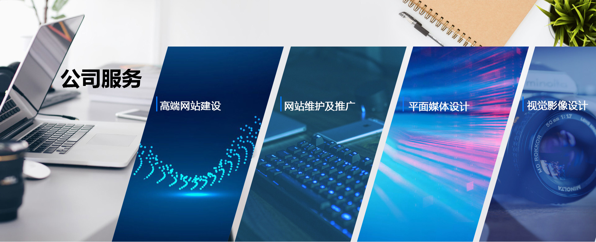 致力于高端網站建設、網站安全維護、網站優化推廣、平面媒體設計、視覺影像設計